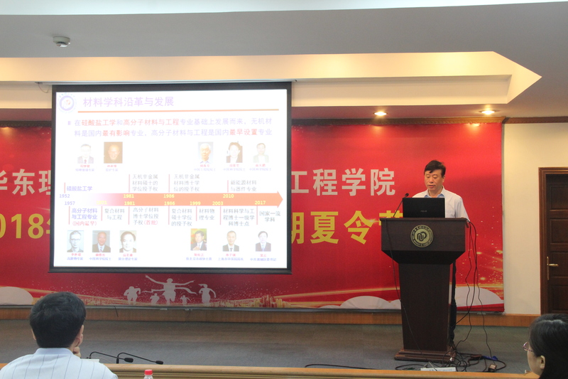 随后,先进树脂复合材料研究室主任黄发荣教授、上海市先进材料重点实验室林绍梁教授、新型清洁能源材料研究室杨化桂教授、低维材料化学研究室主任李永生教授、高分子特种合成与加工研究室胡爱国教授、超细材料制备与应用教育部重点实验室江浩教授、陈庐阳教授、国家医用生物材料动员中心袁媛教授等8位教师分别介绍了各自研究方向的基本内容、科研实力、导师队伍、研究生培养、就业等情况。