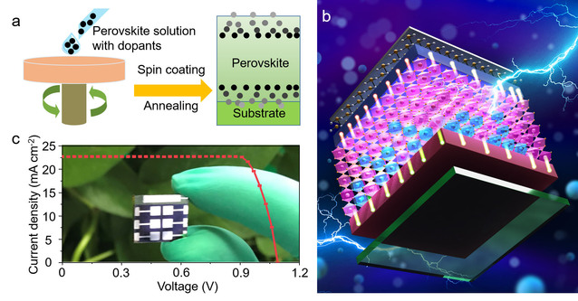 图片说明:原子尺度调控杂质离子在钙钛矿电池的空间分布及光电转换效率图