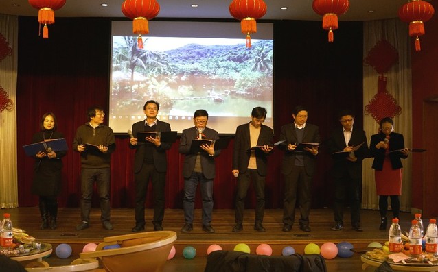 2019年迎新联欢会在徐汇校区八角亭如期举行。联欢会以“砥砺前行创一流,凝心聚力再出发”为主题,学院党委书记唐颂超、副院长林绍梁(主持工作)、党委副书记戴诚安、副院长李欣欣等100多名教职工汇聚一堂,共贺新年。