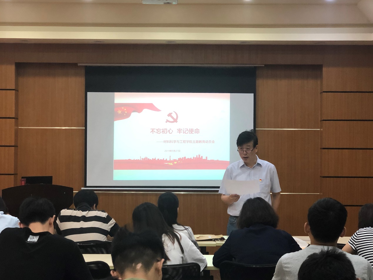 召开“不忘初心、牢记使命”主题教育动员部署会,对学院开展主题教育进行全面动员与重点部署。学院党委书记唐颂超教授、组织员、全体教工和学生党支部书记参加了会议。