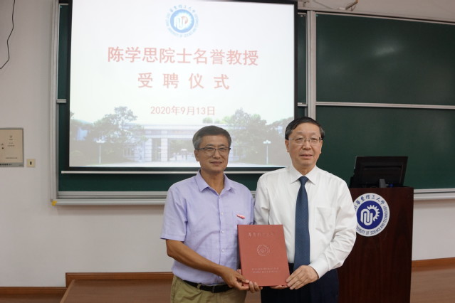 访问,受聘为学校名誉教授并作学术报告。受聘仪式在徐汇校区第三教学楼201室举行,副校长钱锋院士出席受聘仪式并为陈学思院士颁发聘书、佩戴校徽。仪式由欧美无码