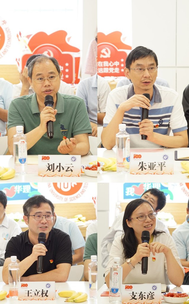 ,当时大学条件比较差,但全校师生在党的领导下又红又专,怀揣着坚定的信仰,我踏实工作,热情严格地指导学生,努力把党旗插在科学的顶峰。”回忆起在校工作的激情往事,指导学生的有趣故事,吴平平仍记忆犹新。“通信卫星远地点发动机采用先进复合材料制造,没有半点儿经验可以借鉴,难度极大。我们勇于实践,不怕失败,终于将我国第一台远地点发动机保驾护航送上蓝天。”说起自己扎根航天科技,奋力拼搏三十年的点点滴滴,王俊激动不已。“工作以来,我也陷入过迷茫低谷,课题组党员教师在我最困难的时候,无私地帮助我,让我能一路坚持下来。”刘小云对身边党员对自己的帮助无限感激。“工作以来最大的荣幸是,始终在我的周围有一批老党员在提携、帮助,指导我,他们教育我从事军工科研一定要耐得住寂寞,一定要有为党和国家服务的态度。一个技术的突破可能需要十年,一定要在这个过程中坚守自己的初心。”中年教师代表朱亚平坚定地说。“作为青年老师一定要提高自己的业务和基础知识,实现为党育人、为国育才的目标,这才是一个好老师的标准。”青年党员教师王立权在发言中提到。“我感受到祖国发生了翻天覆地的变化,给我们提供了很好的学习工作条件。作为一名实验中心的党员教师,我觉得坚守党员初心就是要不断学习,提升本领,更好地为学院师生服务。”青年教师党员支东彦对沐浴在党的光辉下成长,充满感恩。