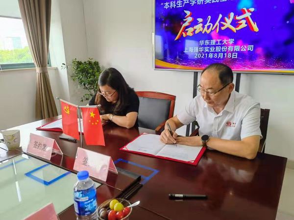 与上海强华实业股份有限公司本科生产学研实践基地签约及揭牌仪式成功举行,漕泾镇党委书记陈立俊、漕泾镇副镇长王红亮、漕泾工业区总经理李礼、强华股份总经理周文华、强华股份战略决策咨询顾问韩宝富、强华股份Etch项目负责人周韦军,华东理工欧美无码