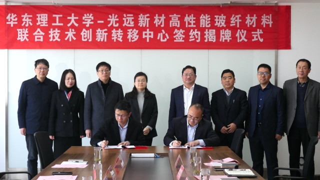 的科研及学科建设、人才队伍等,希望联合技术创新转移中心为光远新材的产业创新赋能,加速推动研发成果从实验室走向工业化,成为融入行业、服务地方的重要平台。庄启昕、李志伟代表双方签约。袁媛、庄启昕、李志伟、宁祥春共同为联合技术创新转移中心揭牌。