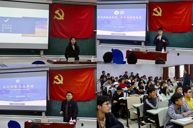 讲师团于奉贤校区C206联合举办“学思悟践话成长,茂学成材向未来”——首届大学生职业规划大赛系列讲座第一讲。本次讲座主讲人为2019级就业先锋赵芷欣和2020级推免生张启航、刘竞泽三位学生党员,分享他们在就业和升学等职业规划方面的经验与感悟。