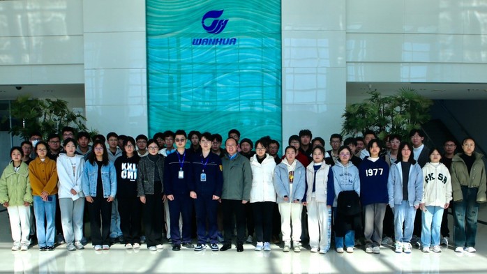下午华理师生一行前往万华高性能材料研究院,同学们参观了解了万华集团在聚氨酯、石化、精细化学品和新兴材料四大产业中的详细应用。