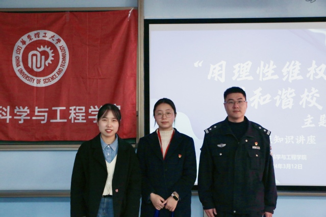 以“3·15”国际消费者权益日为契机,于2024年3月12日下午在奉贤校区C203举办“用理性维权,创和谐校园”专题讲座。本次讲座特别邀请上海市奉贤区医保中心顾焱老师和高校派出所张志荣警官作主题分享,学院党委副书记戴诚安、团委书记张雪薇以及80余名本科生参加本次活动。