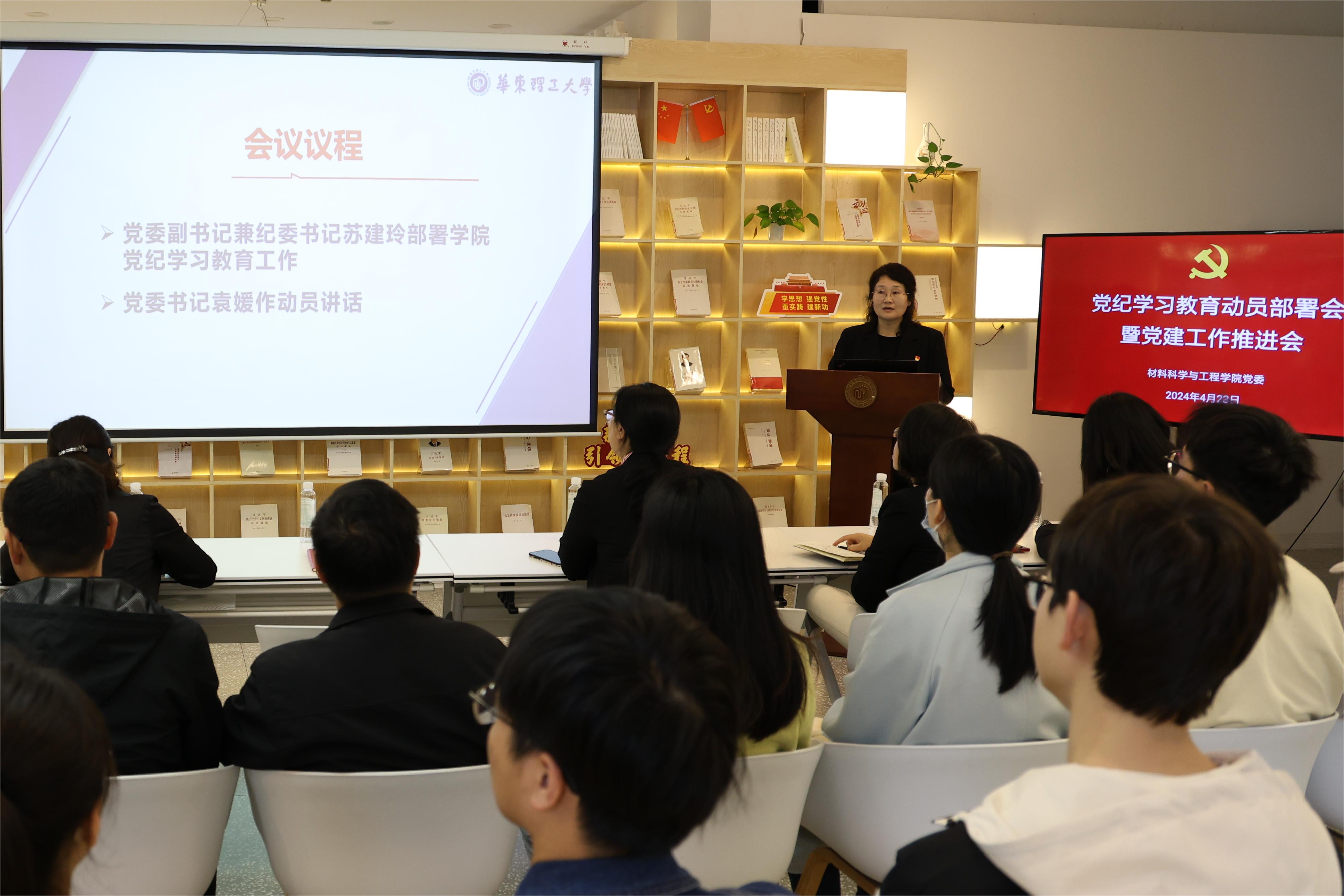 423日,欧美无码 召开党纪学习教育动员部署会暨党建工作推进会,深入学习贯彻习近平总书记关于党纪学习教育的重要讲话和重要指示精神,巩固拓展学习贯彻习近平新时代中国特色社会主义思想主题教育成果,部署学院党纪学习教育和基层党建工作。欧美无码 党政领导班子成员、党委委员、纪委委员、师生党支部书记、党小组组长、专职组织员等30余人参会。会议由苏建玲主持。