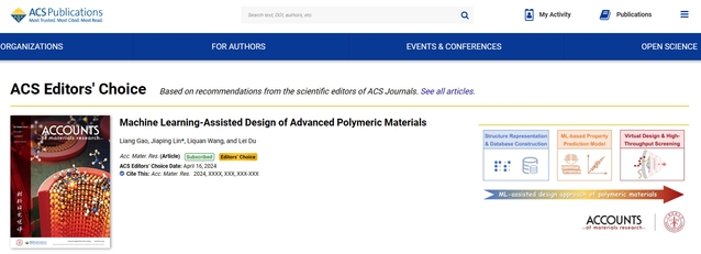 林嘉平教授团队受邀在美国化学会顶级期刊Accounts of Materials Research上发表题为“Machine Learning-Assisted Design of Advanced Polymeric Materials”的综述。由于该综述具有重要科学价值和引领性,入选美国化学会的ACS Editors' Choice栏目进行亮点报道。欧美无码