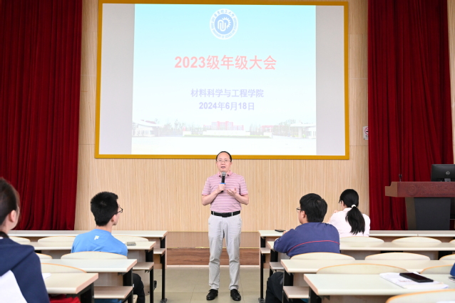 在A200召开2023级本科生年级大会。此次年级大会内容涵盖了期末考试纪律、安全教育宣讲、大学生涯规划等多个方面。2023级年级辅导员李廷雨、佘蕴芮及2021级学生代表李开元参加会议。