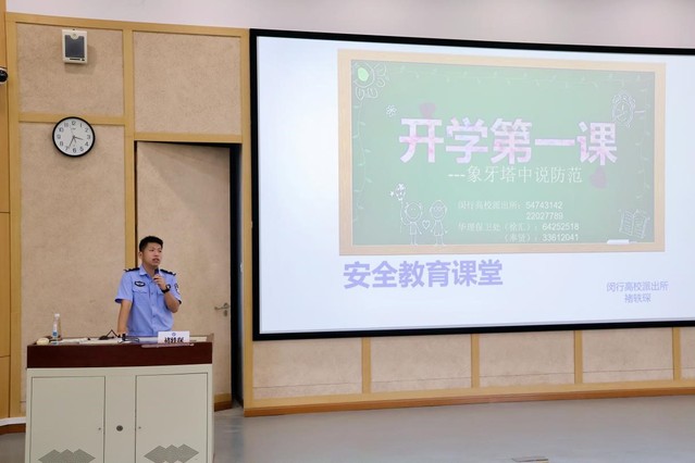 在徐汇校区第七教学楼七大教室开展研究生新生安全教育,本次安全教育邀请到闵行高校派出所校区组警长褚轶琛和学校安全环保办公室李晨晨主讲。会议由研究生辅导员丁熙桐主持。