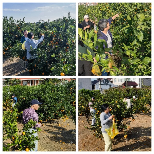 返程前,教职工们前往桔园采摘基地,体验了一场“从枝头到舌尖”的甜蜜之旅。桔园内硕果累累,黄澄澄的蜜桔挂满枝头。大家穿梭于桔树间,亲手采摘皮薄汁甜的蜜桔,感受着生态农业带来的丰收喜悦。这种亲近自然、体验劳动的方式,不仅放松了身心,更深刻认识到了生态保护与可持续发展的重要性。